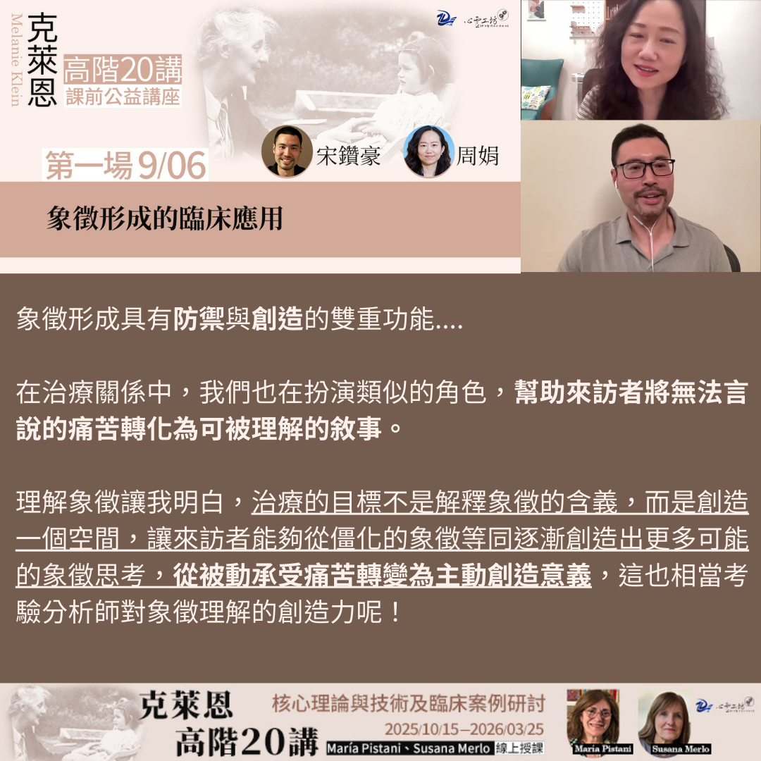 2025/9/06【克萊恩20講】公益講座 第一場,宋鑽豪、周娟:象徵形成的臨床應用