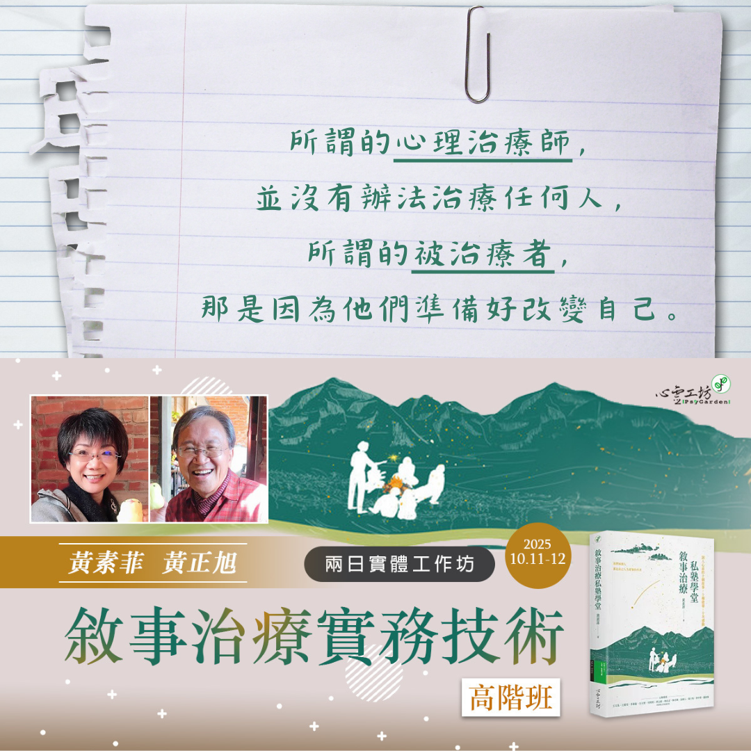 2025/10/11-10/12 黃素菲、黃正旭【敘事治療實務技術・高階班】兩日實體工作坊