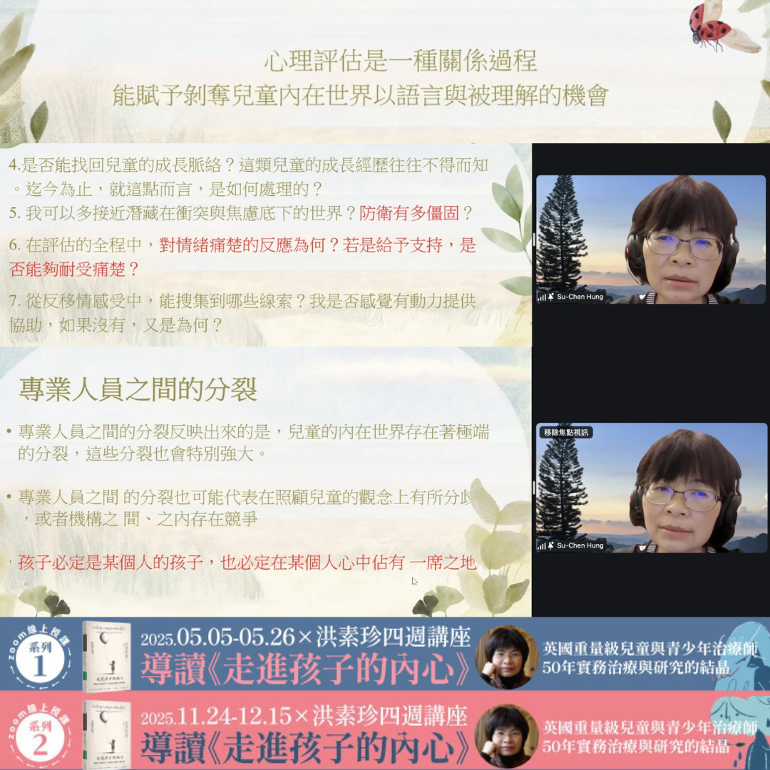 🌺 2025/5/05-5/26 洪素珍【導讀《走進孩子的內心》系列一】四週講座
